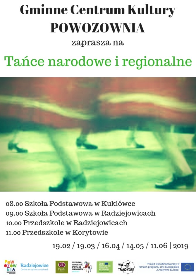 Cykl warsztatów tanecznych odbędzie się w placówkach oświatowych w gminie Radziejoiwce. Działanie jest realizowane w partnerstwie z Gmimnnym Centrum Kultury Powozownia w Radziejowicach w ramach projektu Viva Tramontana dofinansowanego przez Unię Europejską.