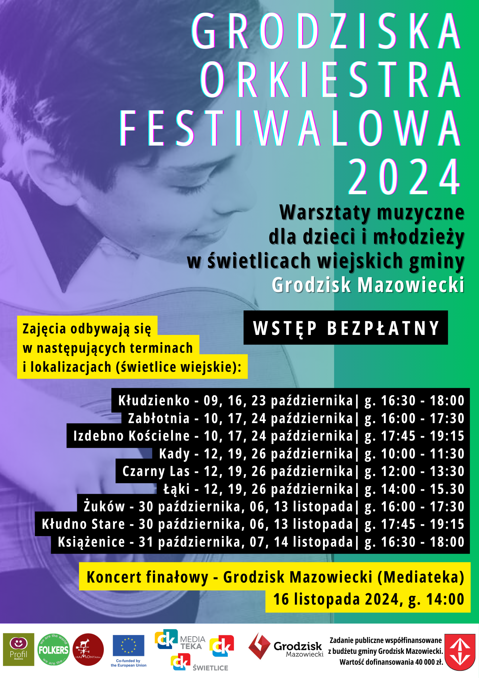 Zapraszamy serdecznie wszystkie dzieci i młodzież na warsztaty muzyczne, które odbędą się w świetlicach wiejskich gminy Grodzisk Mazowiecki w październiku i listopadzie 2024.
